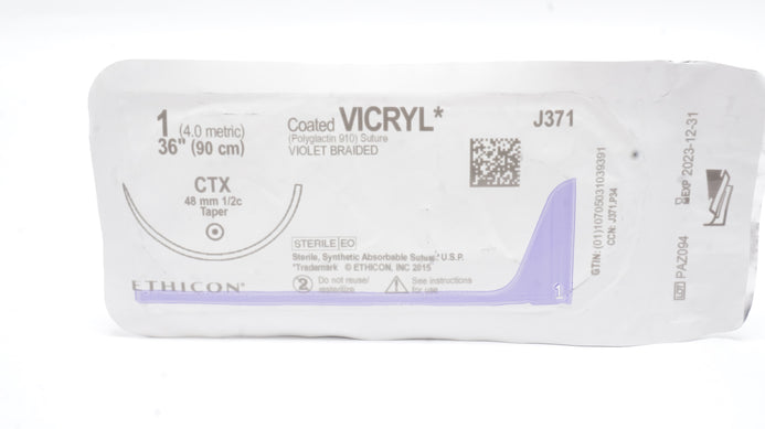 - Ethicon J371 1 Coated VICRYL CTX 48 mm 1/2c Taper, 36inch (x)