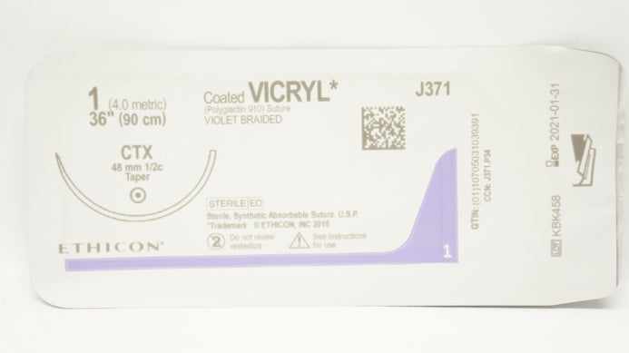 - Ethicon J371 1 Coated VICRYL Stre CTX 48 mm 1/2c Taper, 36 inch (x)