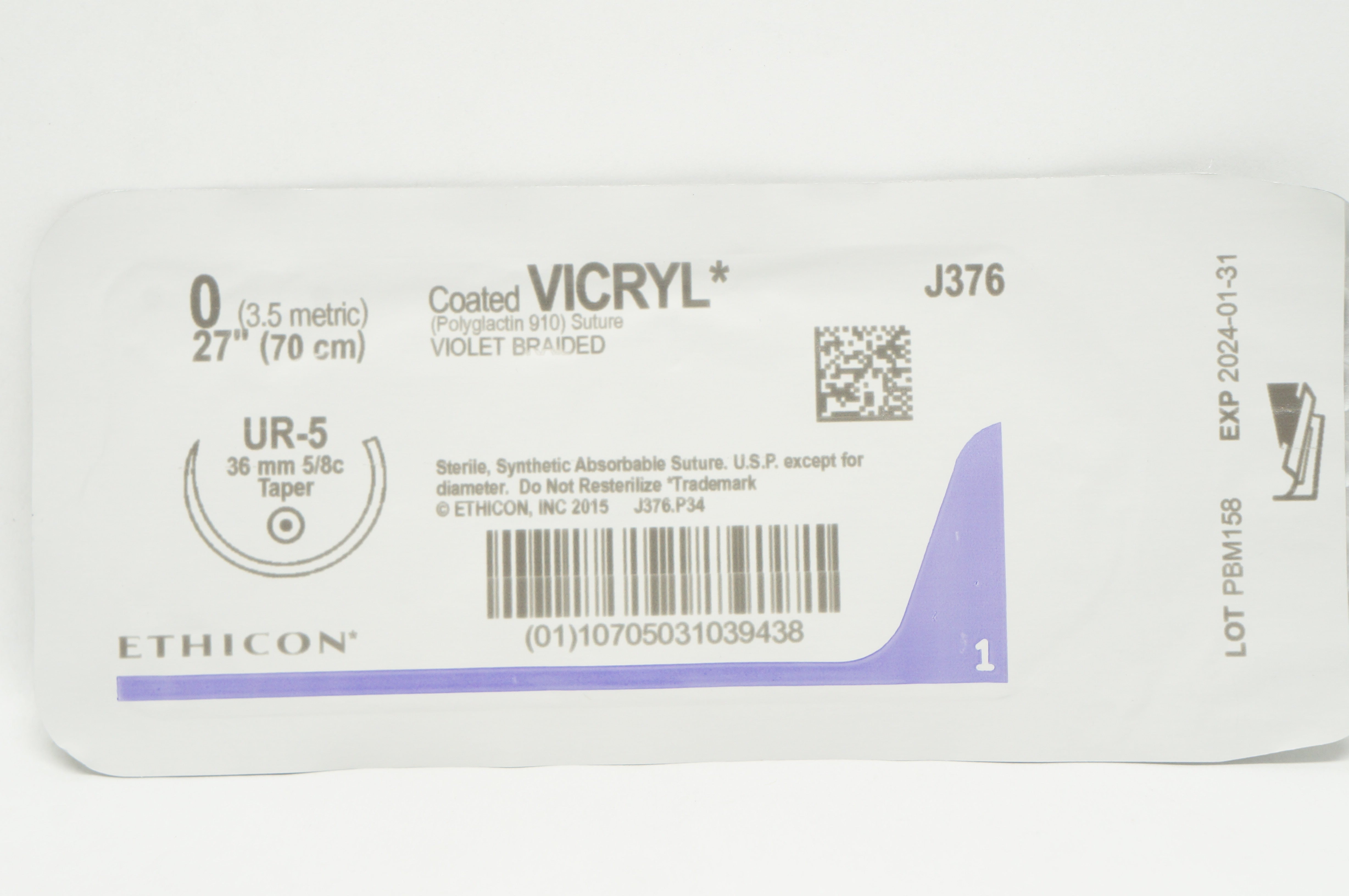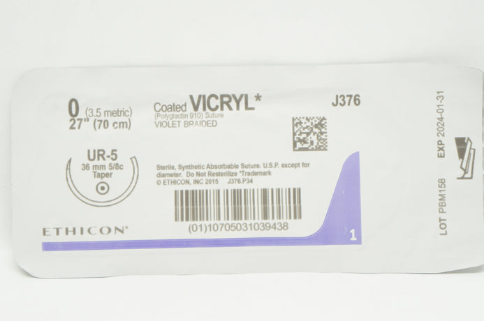 - Ethicon J376 0 Coated VICRYL Polyglactin Stre UR-5 36mm 5/8c Taper, 27inch