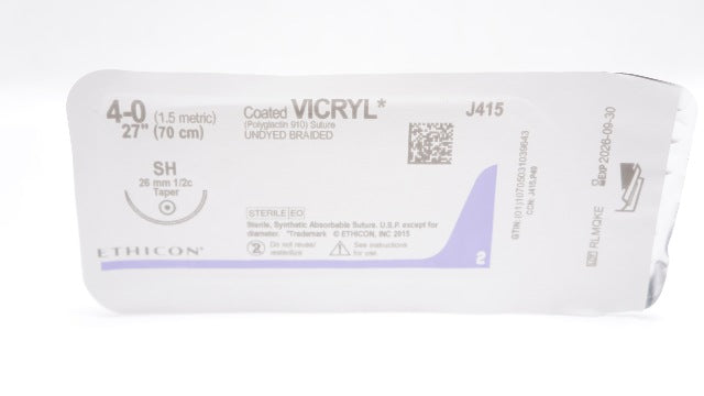 - Ethicon J415 4-0 Coated Vicryl Stre Undyed Braided SH 26mm Taper, 27inch