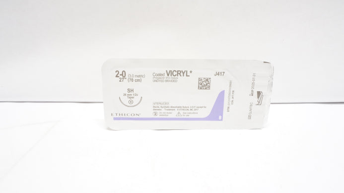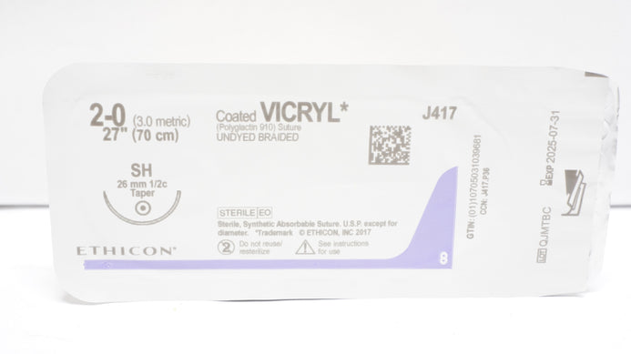 - Ethicon J417 2-0 Coated VICRYL Polyglactin 910 Stre SH 26mm 1/2c Taper 27inch(x)