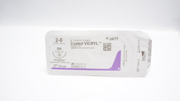 - Ethicon J417 2-0 Coated VICRYL Polyglactin Stre SH 26mm 1/2c Taperpoint 27inch