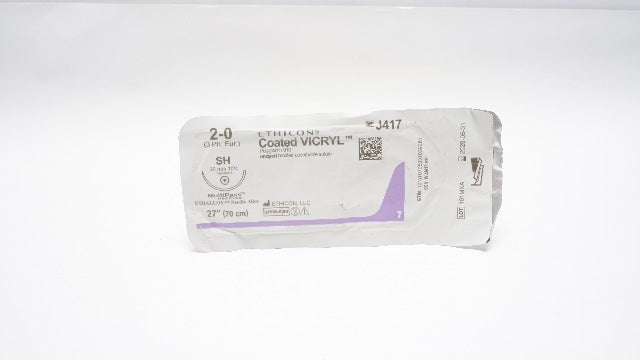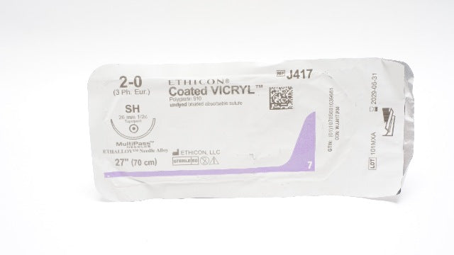 - Ethicon J417 2-0 Coated VICRYL Polyglactin Stre SH 26mm 1/2c Taperpoint 27inch