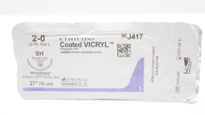 - Ethicon J417 2-0 Coated VICRYL SH 26mm 1/2c Taper 27inch