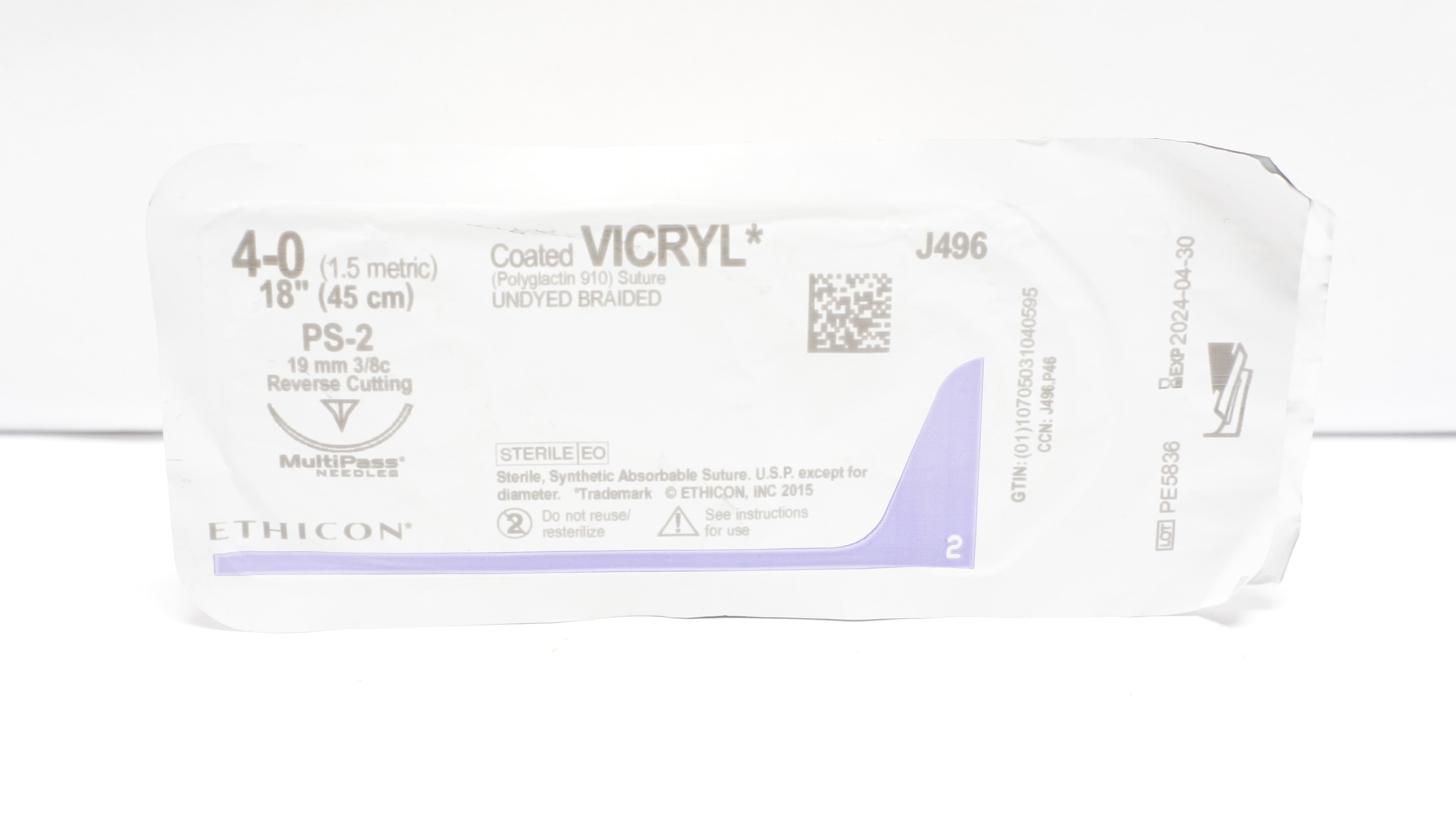 - Ethicon J426 4-0 Coated Vicryl Stre PS-2 19mm 3/8c Reverse Cutting 27inch (x)