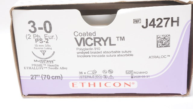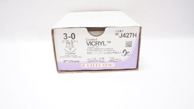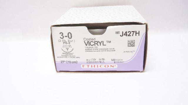 - Ethicon J427H 3-0 Coated Vicryl Polyglactin Stre PS-2 19mm 3/8c 27In - Box of 36