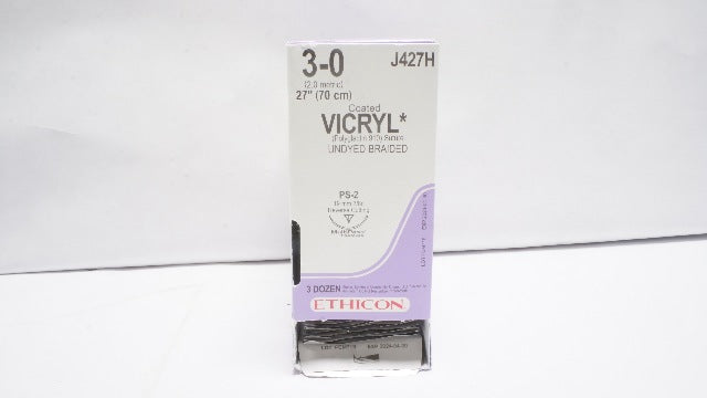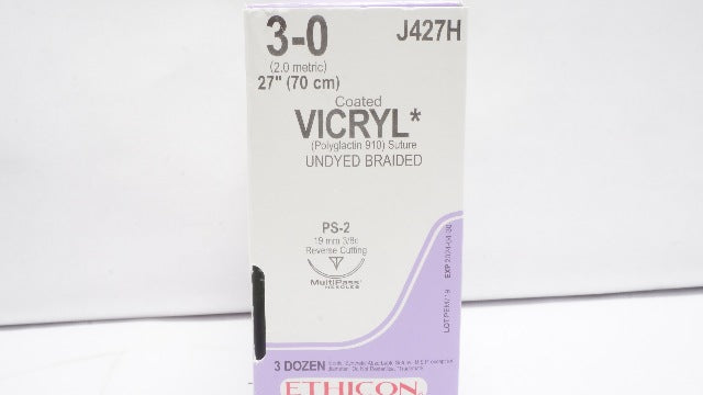 - Ethicon J427H 3-0 Vicryl Stre PS-2 19mm 3/8c Reverse Cutting 27inch(x)-Box of 36