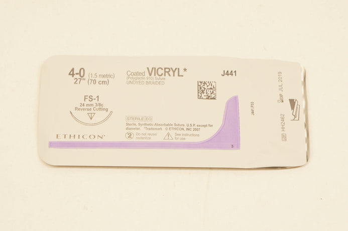 - Ethicon J441 4-0 VICRYL, FS-1, 24mm 3/8c Reverse Cutting, 27inch (x)