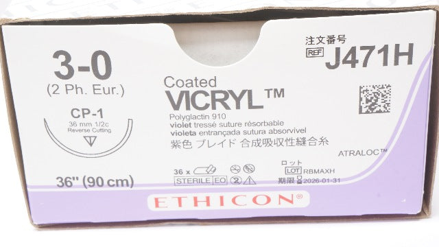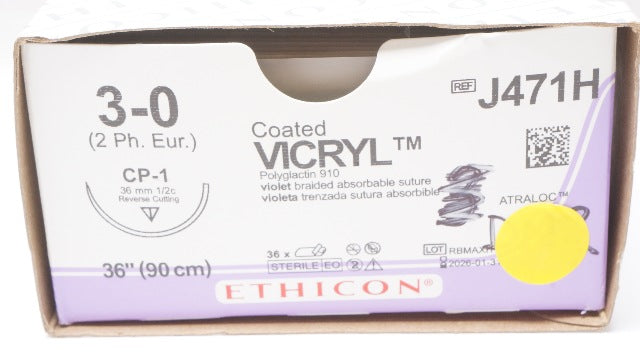 - Ethicon J471H 3-0 Coated Vicryl Absorbable Stre CP-1 36mm 1/2 36In - Box of 33