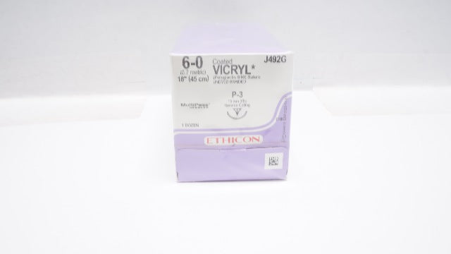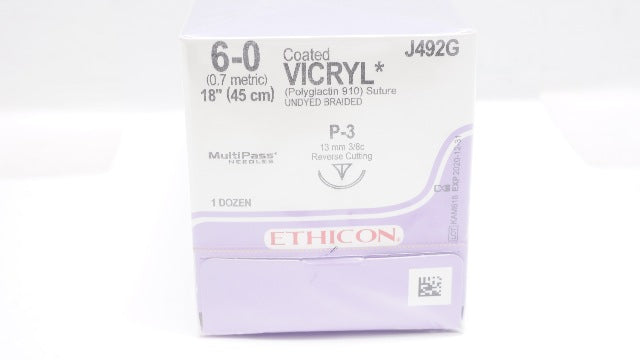 - Ethicon J492G 6-0 VICRYL Stre P-3 13mm 3/8c Reverse Cutting 18inch (x)-Box of 12