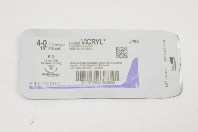 - Ethicon J494 4-0 VICRYL, P-3, 13mm 3/8c, 18inch