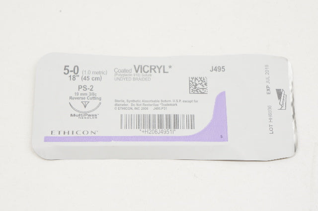 - Ethicon J495 5-0 VICRYL, PS-2, 19mm 3/8c Reverse Cutting, 18inch (x)
