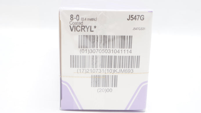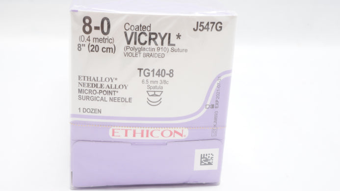 - Ethicon J547G 8-0 Coated VICRYL Stre TG140-8 6.5mm 3/8c Spatula 18in-Box of12(X)