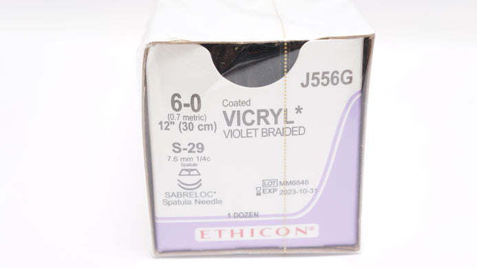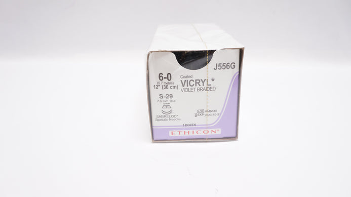 - Ethicon J556G 6-0 Coate VIcryl S-29 7.6mm 1/4c Spatula 12in - Box of 12 (x)