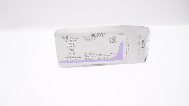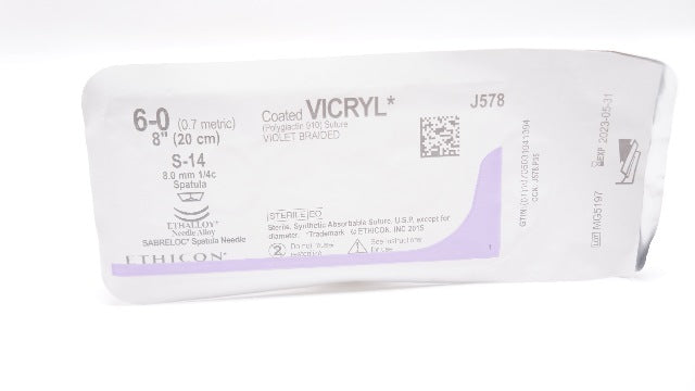 - Ethicon J578 6-0 VICRYL, S-14, 8mm 1/4c Spatula, 8inch (x)