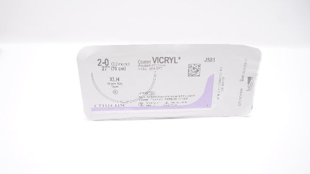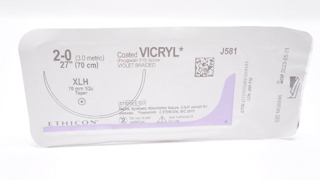 - Ethicon J581 2-0 Coated Vicryl, XLH, 70mm 1/2c Taper, 27inch (x)
