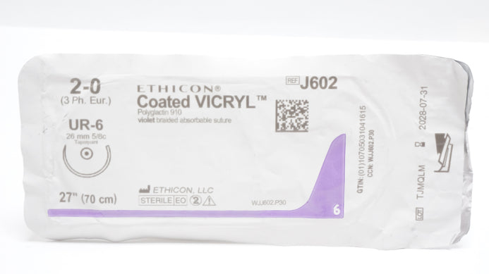 - Ethicon J602 2-0 Coated VICRYL Polyglactin Stre UR-6 26mm 5/8c Taperpoint 27inch