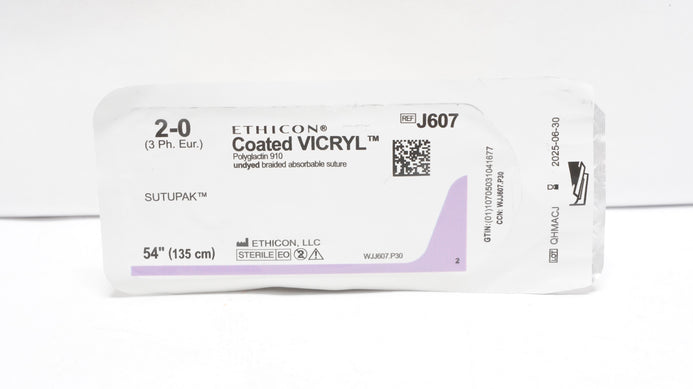 - Ethicon J607 2-0 Coated Vicryl Undyed Braided, 54inch (x)