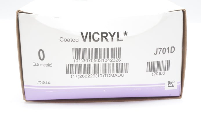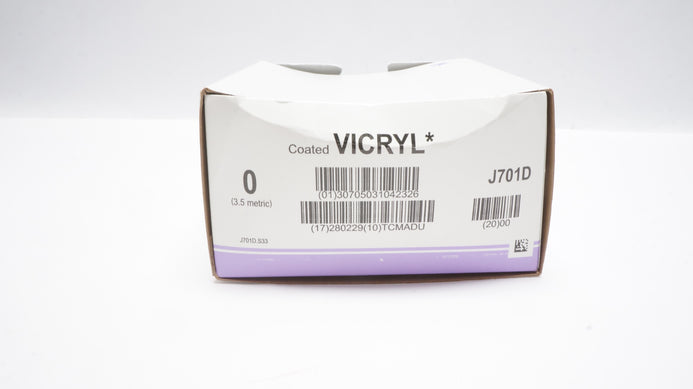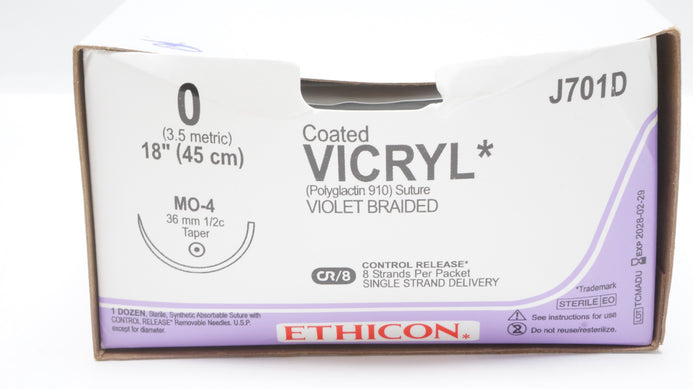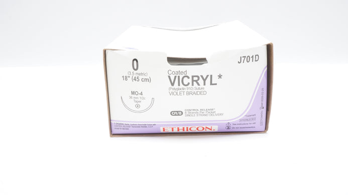 - Ethicon J701D 0 Coated VICRYL Stre MO-4 36mm 1/2c Taper, 18inch - Box of 12