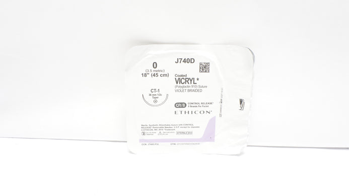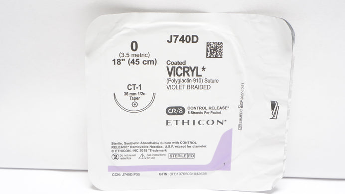 - Ethicon J740D 0 Coated VICRYL Polyglactin 910 Stre CT-1 36mm 1/2c Taper, 18inch