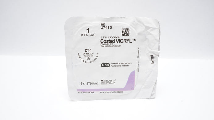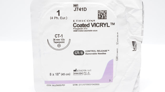 - Ethicon J741D 1 Coated VICRYL Polyglactin Stre CT-1 36mm 1/2c Taperpoint 18inch
