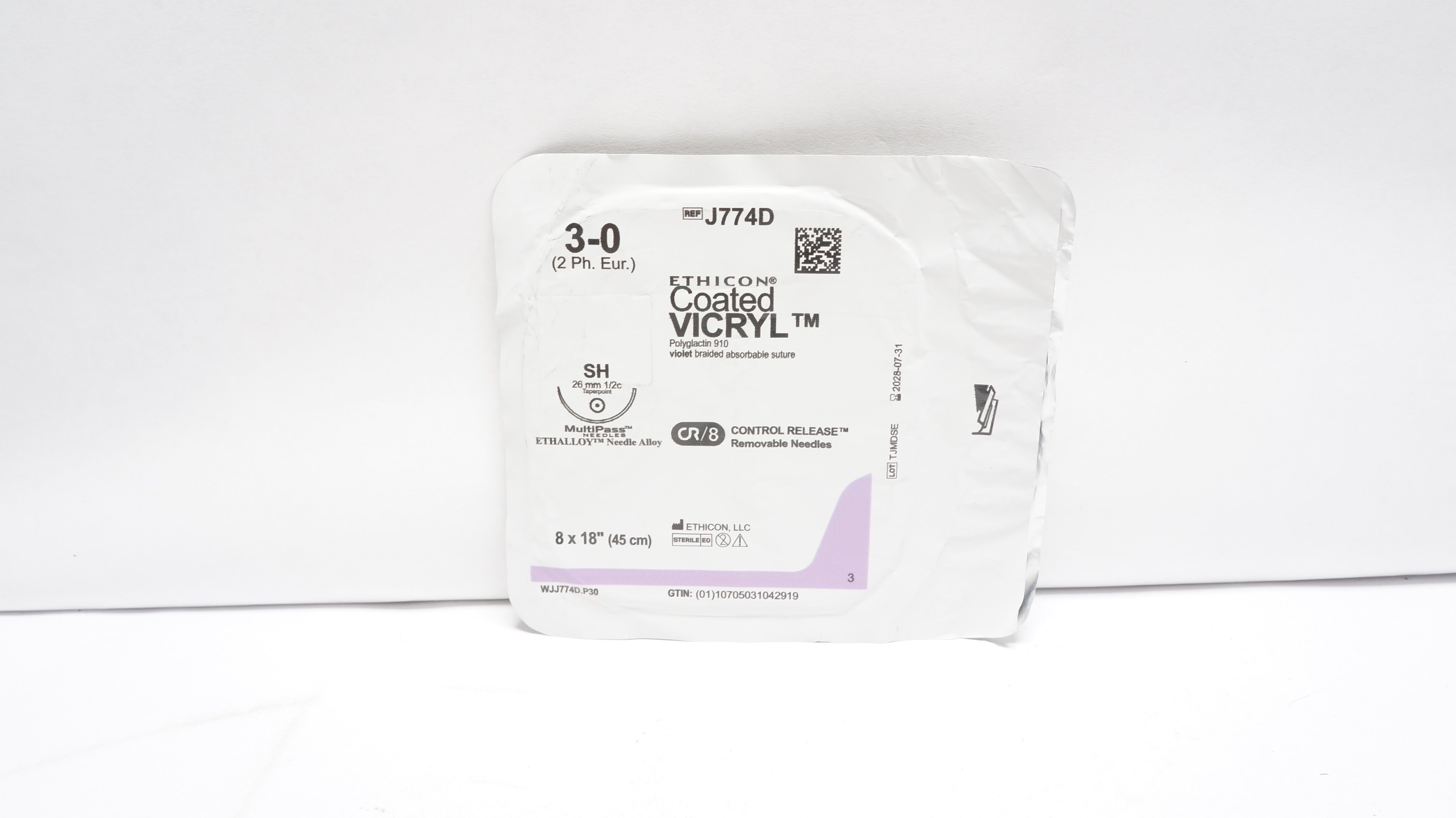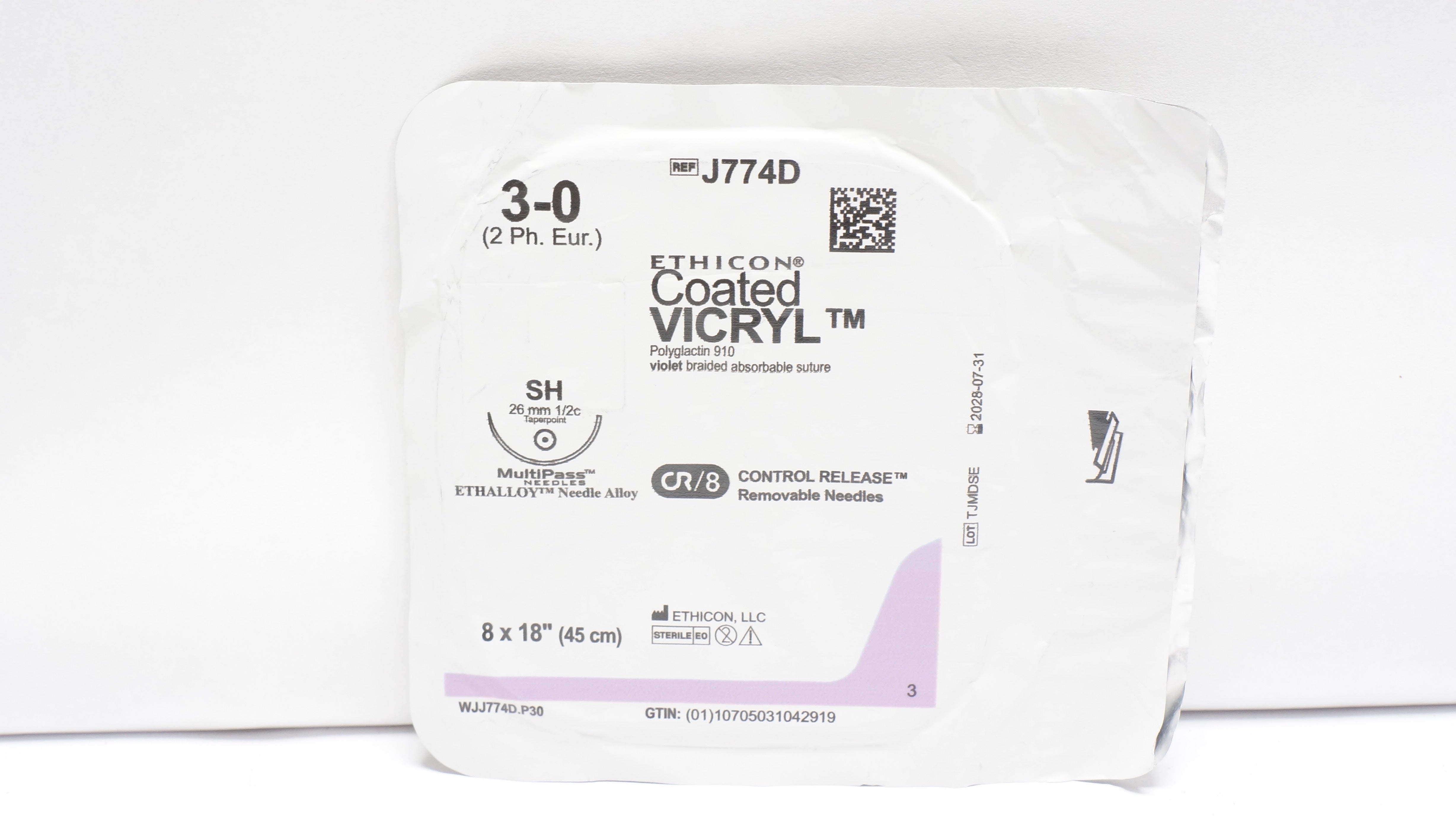 - Ethicon J774D 3-0 Coated VICRYL Braided Stre SH 26mm 1/2c Taperpoint 18inch