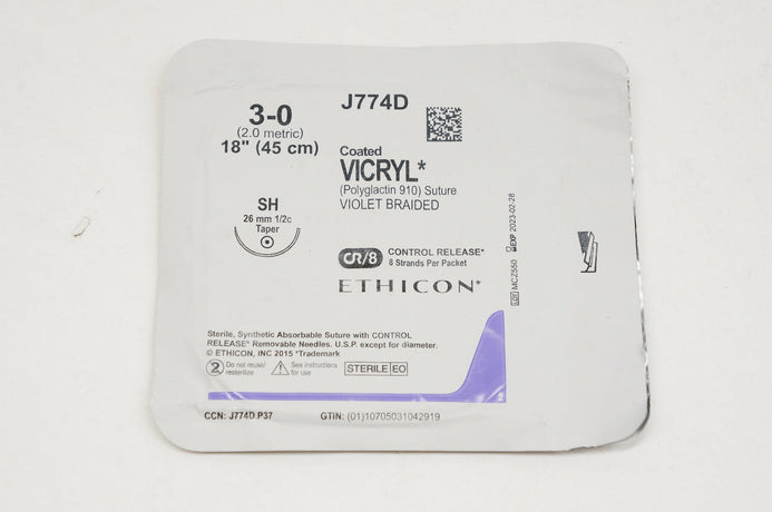 - Ethicon J774D 3-0 VICRYL, SH, 26mm 1/2c Taper, 18inch