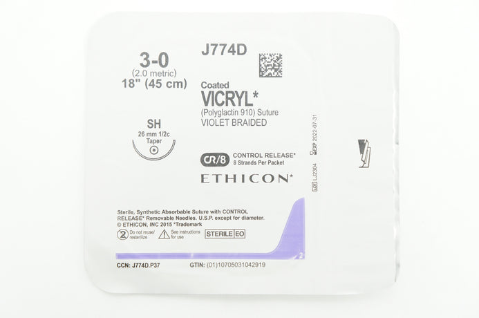 - Ethicon J774D 3-0 VICRYL SH 26mm 1/2c Taper 18inch ~ Lot of 5