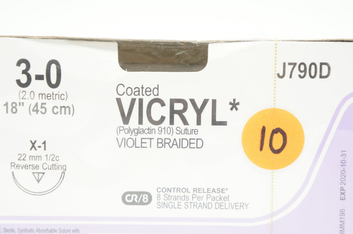 - Ethicon J790D 3-0 Coated VICRYL X-1 22mm 1/2c 18 inch CR/8 (x) - Box of 12