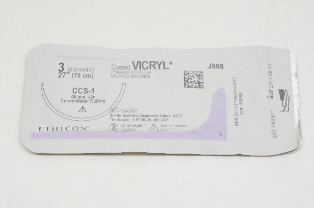 - Ethicon J808 3 Coated VICRYL Stre CCS-1 60mm 1/2c Conventional Cutting 27inch(x)