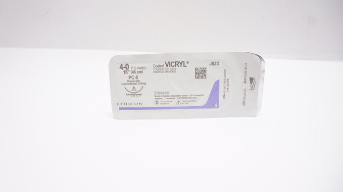 - Ethicon J823 4-0 Coated Vicryl PS-5 19mm 3/8c Conventional Cutting, 18inch