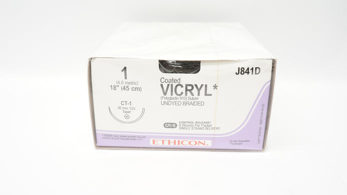 - Ethicon J841D 1 VICRYL Polyglactin Stre CT-1 36mm 1/2c Taper, 18inch - Box of 12