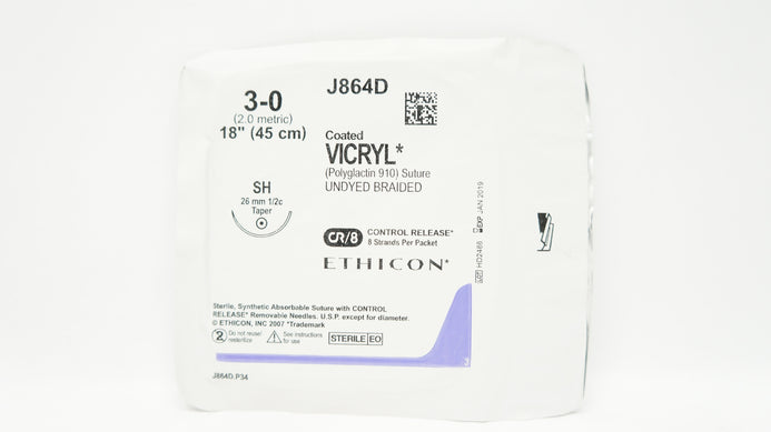 - Ethicon J864D 3-0 Coated VICRYL Stre SH 26mm 1/2c Taper, 18inch (x)
