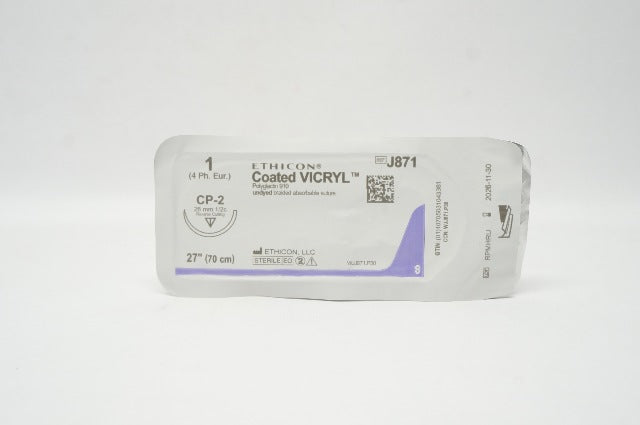 - Ethicon J871 1 Coated VICRYL, CP-2 26mm 1/2c Reverse Cutting, 27inch