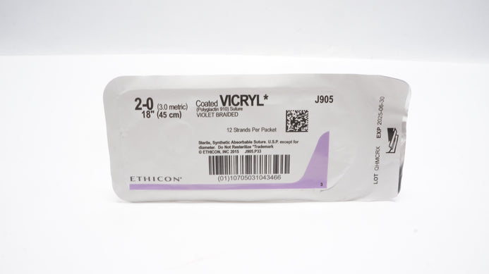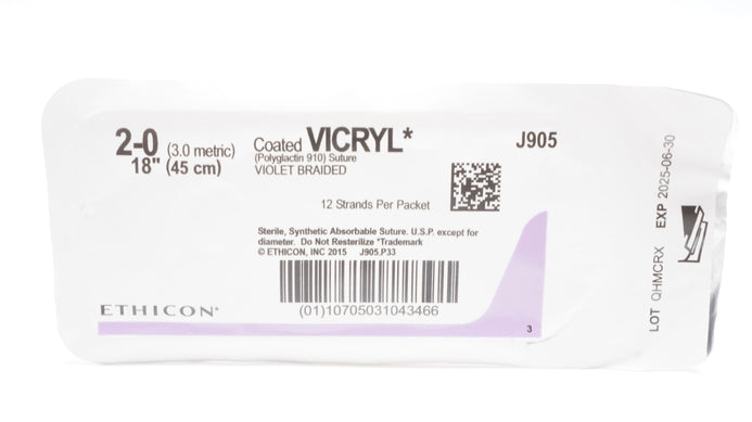 - Ethicon J905 2-0 Coated VICRYL Polyglactin 910 Stre Violet Braided, 18inch