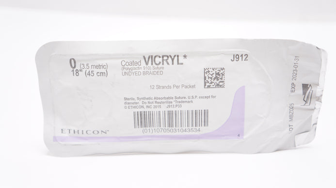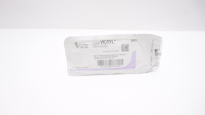 - Ethicon J912 0 Coated VICRYL, Undyed Braided, 18inch (x)