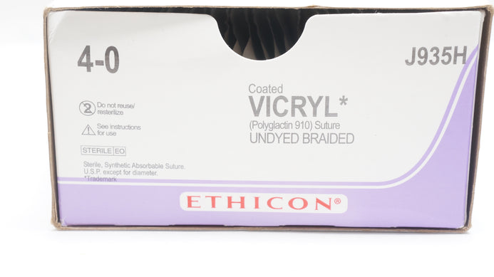 - Ethicon J935H 4-0 VICRYL, PS-1, 24mm 3/8c Reverse Cutting, 27inch(x) - Box of 28