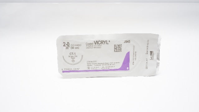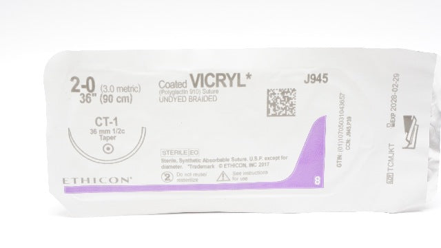 - Ethicon J945 2-0 Coated VICRYL Braided Stre CT-1 36mm 1/2c Taper, 36inch