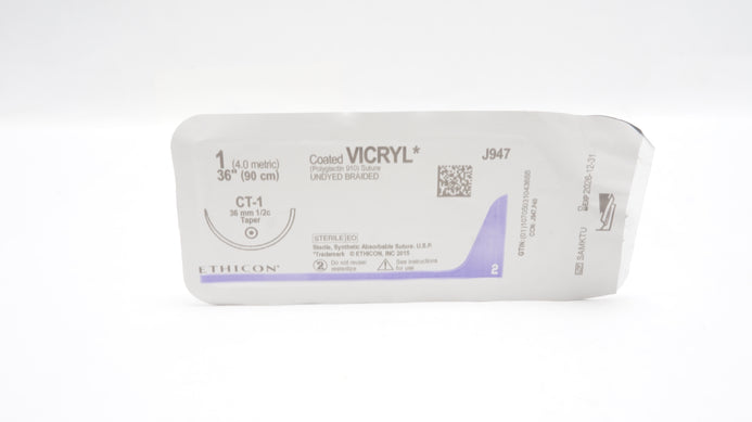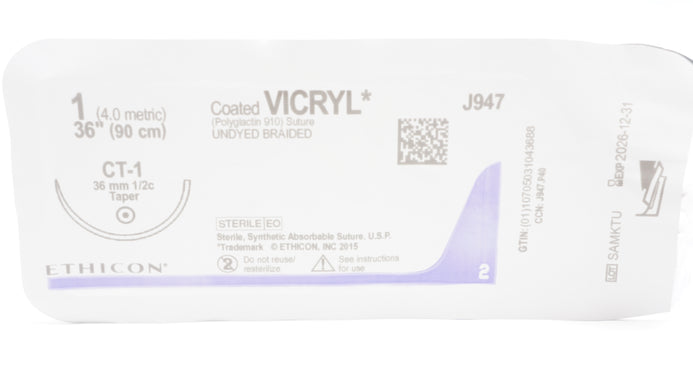 - Ethicon J947 1 Coated VICRYL Stre Undyed Braided CT-1 36mm 1/2c Taper 36inch