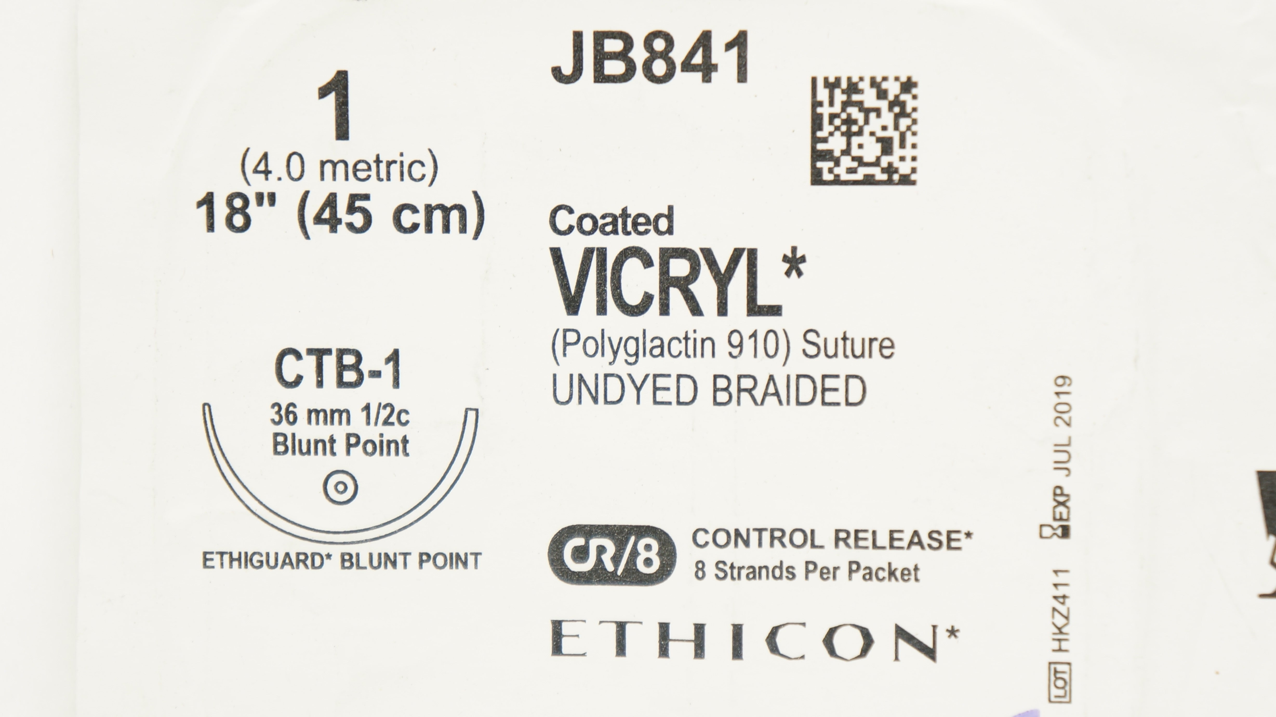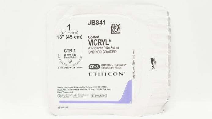 - Ethicon JB841 1 Coated VICRYL CTB-1, 36mm 1/2c Blunt Point, 18inch (x)