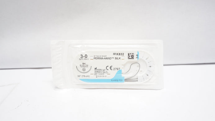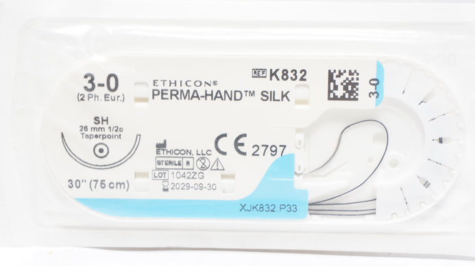 - Ethicon K832 3-0 PERMA-HAND SILK Stre SH 26mm 1/2c Taperpoint, 30inch