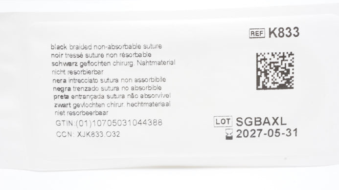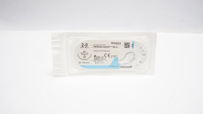- Ethicon K833 2-0 PERMA-HAND SILK Stre SH 26mm 1/2c Taperpoint, 30inch
