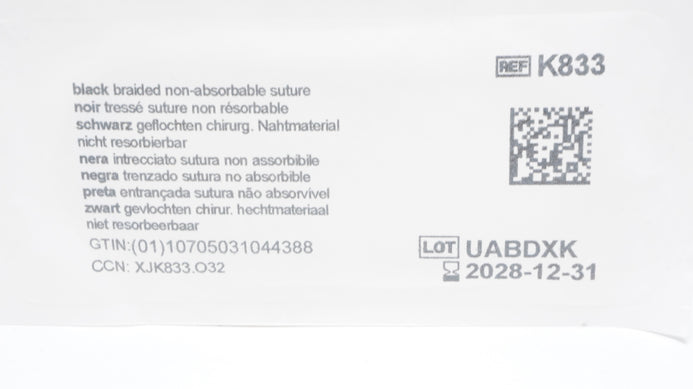 - Ethicon K833 2-0 Perma-Hand Silk Stre SH 26mm 1/2c Taperpoint, 30inch