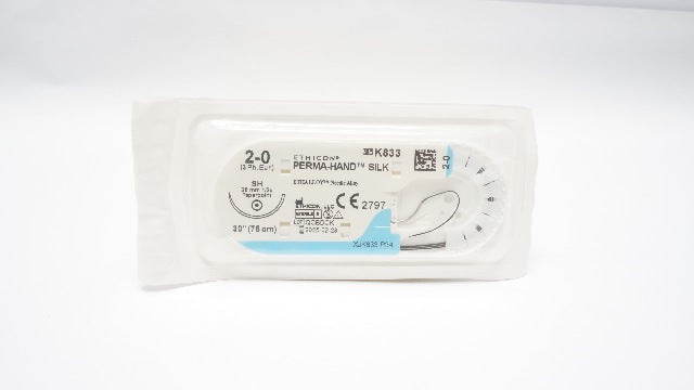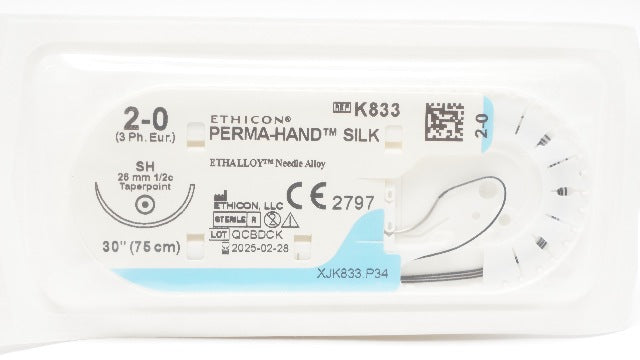 - Ethicon K833 2-0 Perma-Hand Silk Stre SH 26mm 1/2c Taperpoint, 30inch (x)