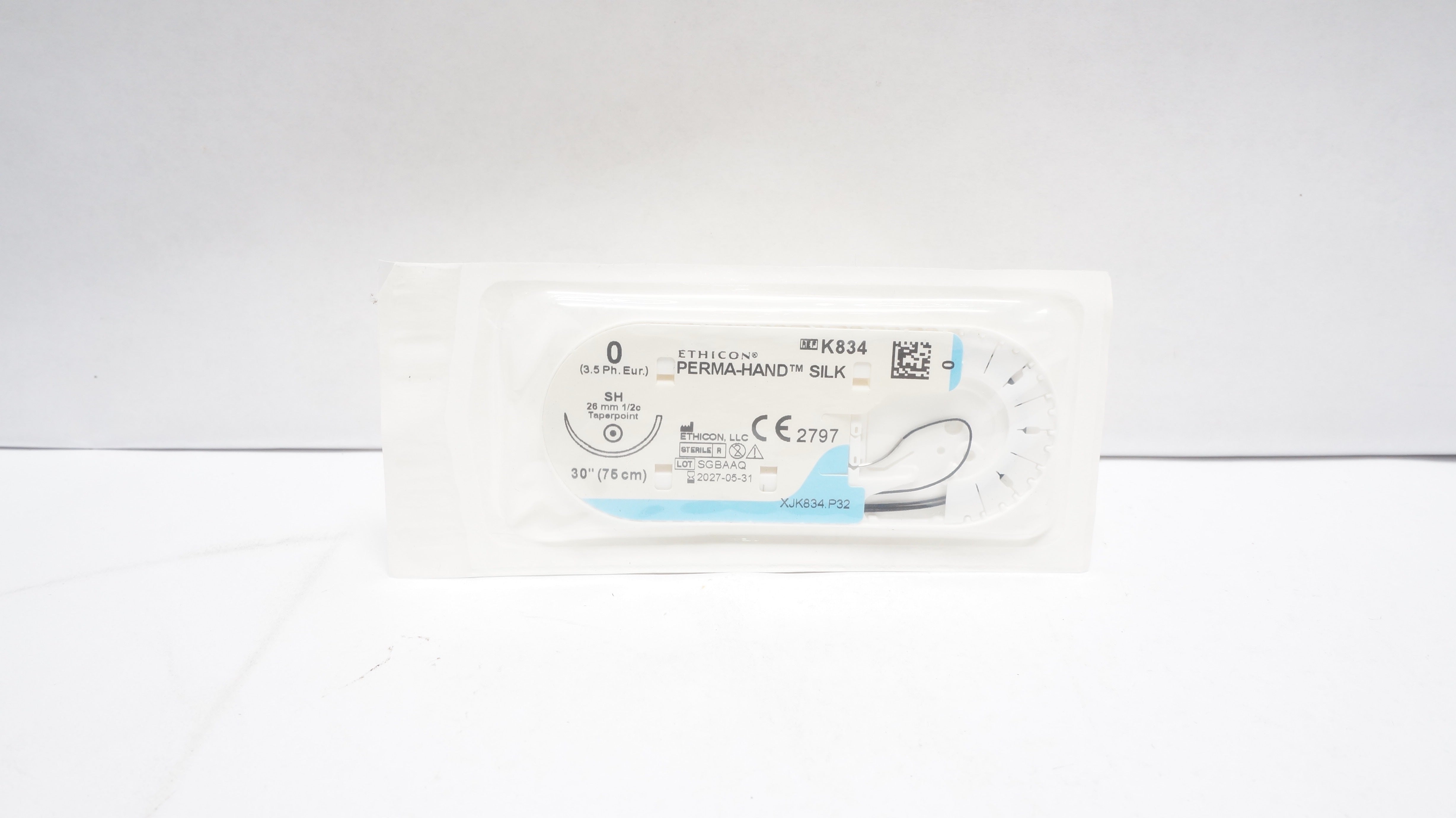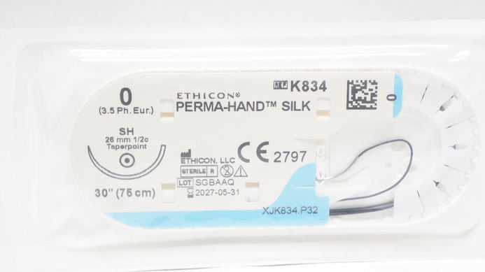 - Ethicon K834 0 Perma-Hand Silk Black Braided Stre SH 26mm 1/2c Taperpoint 30inch