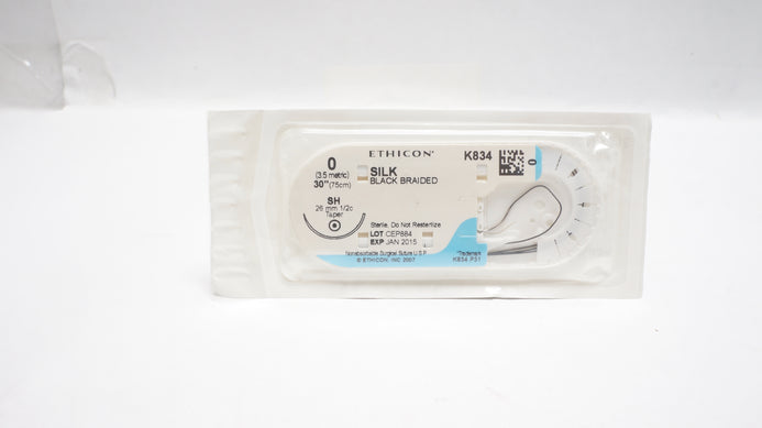- Ethicon K834 0 Perma-Hand Silk Stre Black Braided SH 26mm 1/2c Taper, 30inch (x)