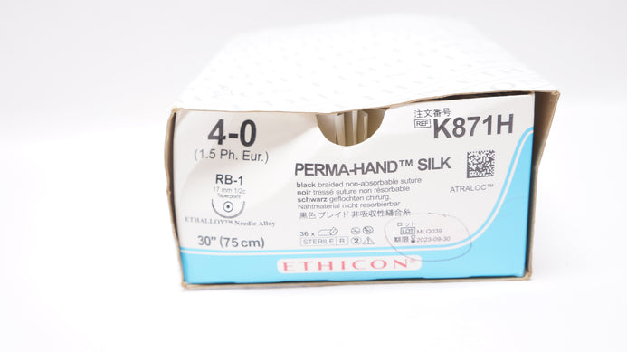 - Ethicon K871H 4-0 PERMA-HAND, RB-1, 17mm 1/2 C,Taperpoint 30In (x) - Box of 26