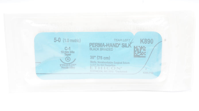 - Ethicon K890 5-0 Perma-Hand Silk Stre C-1 13mm 3/8c Taper, 30inch