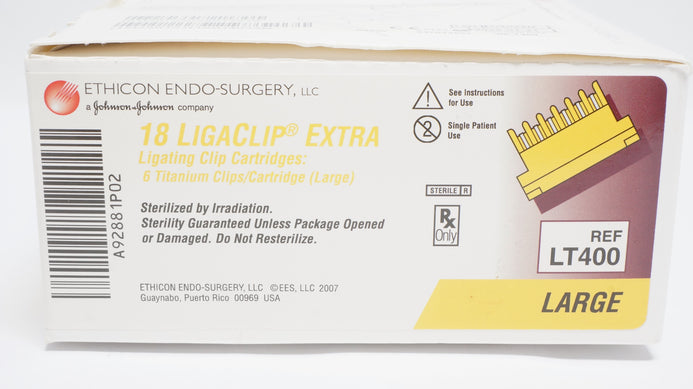 - Ethicon LT400 18 Ligaclip Extra Ligating Clip Cartridge, Large - Box of 6 (x)