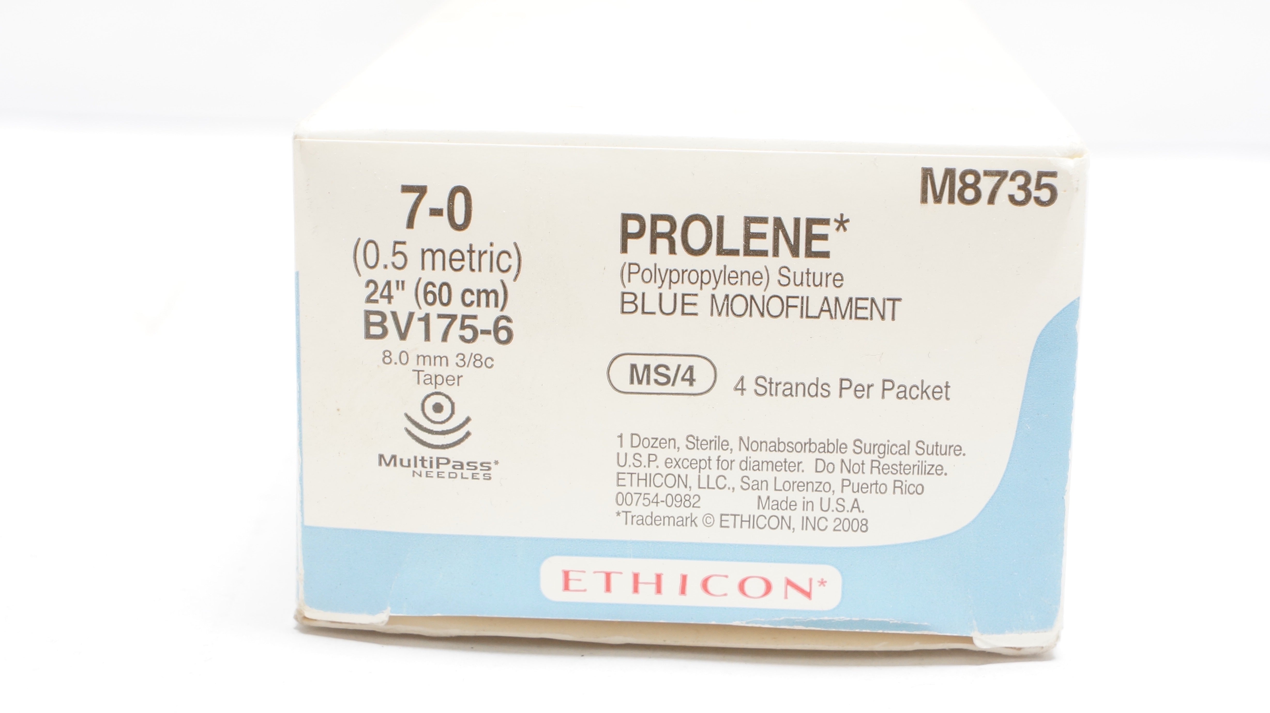 - Ethicon M8735 7-0 Prolene Stre BV175-6 8.0mm 3/8c Taper 24inch (x) - Box of 12